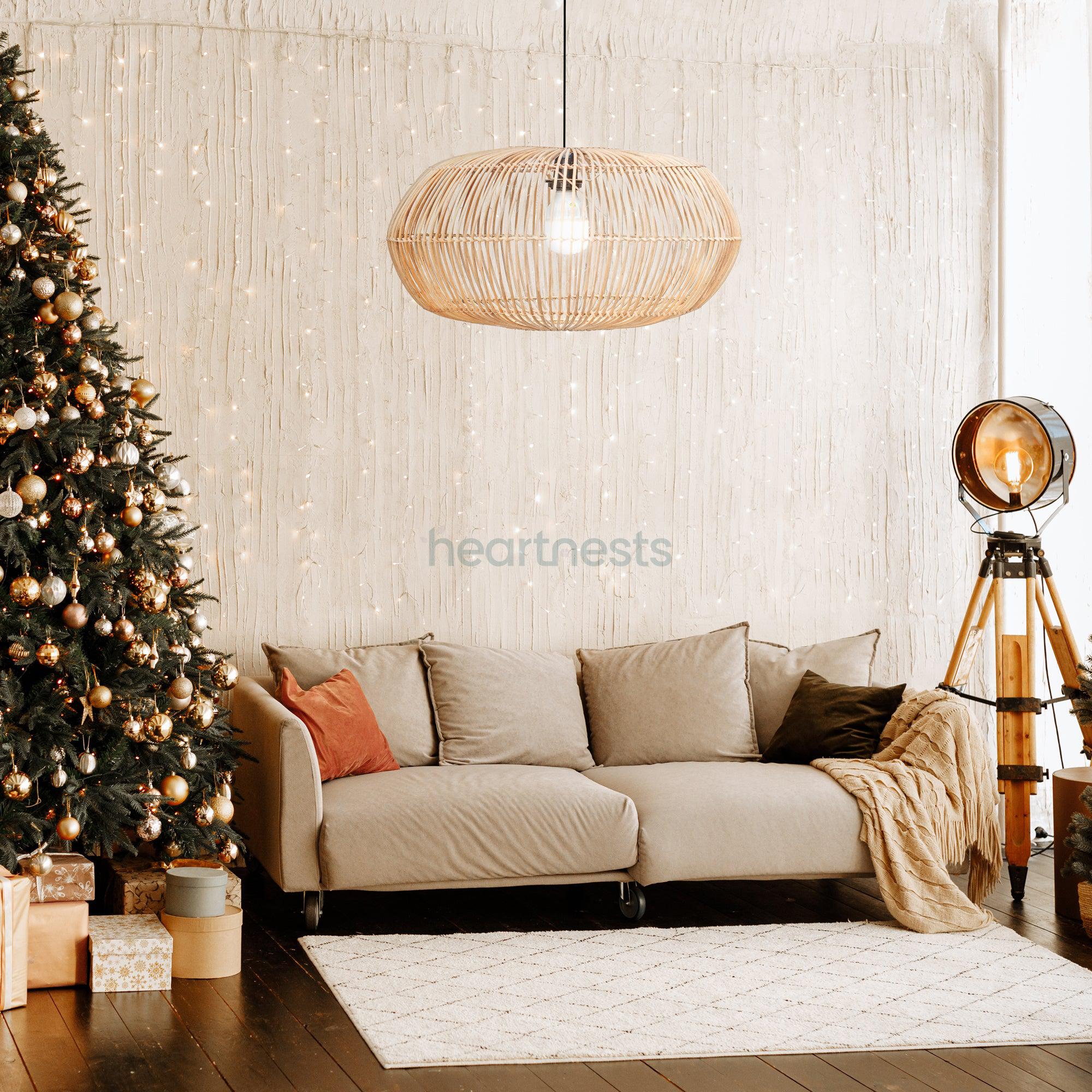This beautiful piece is handmade with love and care by local Vietnamese artisans. Organic rattan is skillfully woven onto sturdy metal frame using traditional weaving techniques providing such a special work of art which has never gone out of favour. This pendant light once shines, will add a sense of story to the existing elements of your rooms. It looks great in variety of different home decoration settings, from contemporary to Boho, minimalistic, Scandinavian, Hampton or coastal styles. Whether it is domestic or commercial use in an industrial space, a beach house, a vacation home or Airbnb rentals, it won't disappoint you. The options are endless.